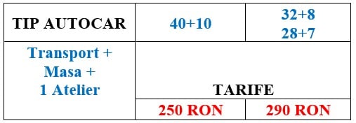 Tarifele sunt valabile pentru plecarile din: Suceava, Iași, Botoșani, Bacău, Piatra Neamț, Târgu Neamț, Fălticeni, Bistrița. Pentru excursiile organizate din Cluj și Târgu Mureș se achită un supliment de 60 lei (autocar 50/60 locuri), respectiv 80 lei (autocar 35/40 locuri).