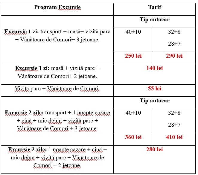 - Demipensiune: Cină (în seara sosirii) + Mic dejun (în dimineața următoare);