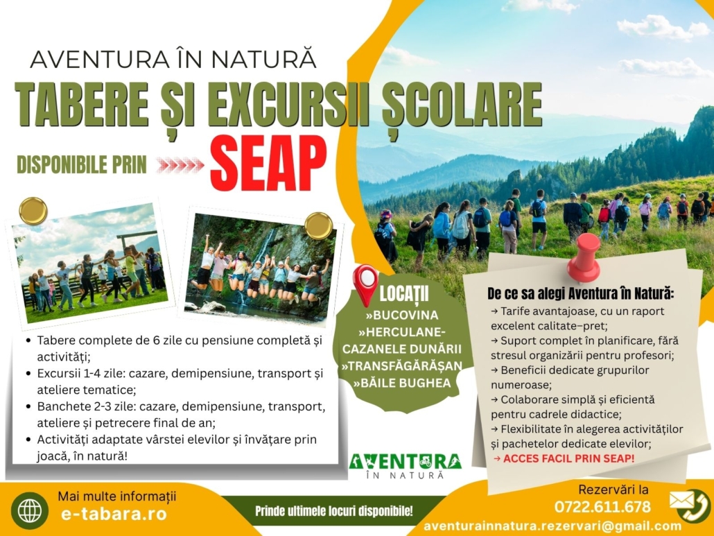 Organizarea unei tabere sau excursii școlare implică proceduri administrative complexe. De aceea, Aventura În Natură oferă acces facil prin SEAP, astfel încât întregul proces să fie rapid și cât mai simplu.